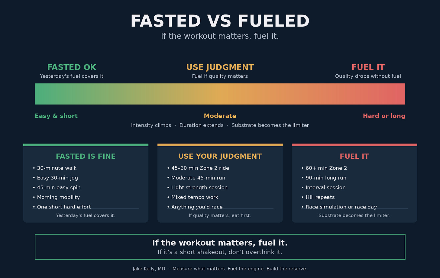Match the fuel to the work. Short and easy can be fasted. Long and meaningful should be fueled.