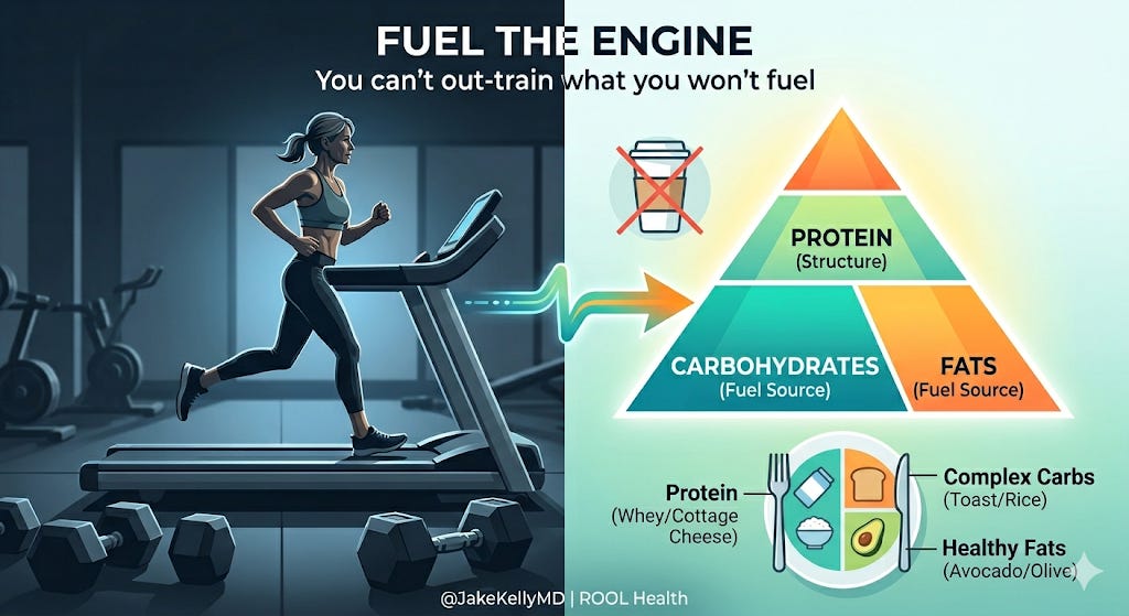 You can’t out-train what you won’t fuel. And whether you’re training for something or just trying to feel like yourself by the afternoon, you can’t build cardiorespiratory fitness, or metabolic health, improve energy, or a body you trust on a system that’s running on fumes by 9 AM.
